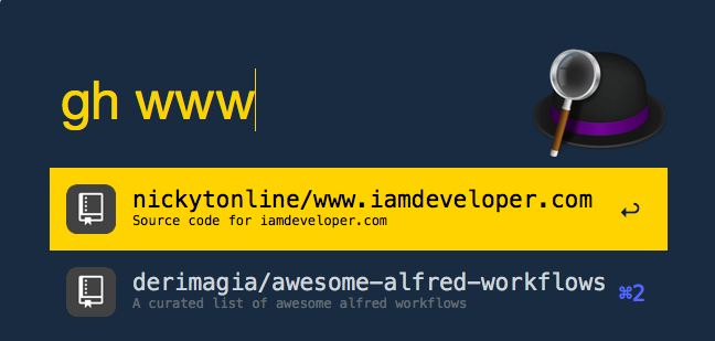 - gharlan/alfred-github-workflow: GitHub Workflow for Alfred 3. Grab it here.